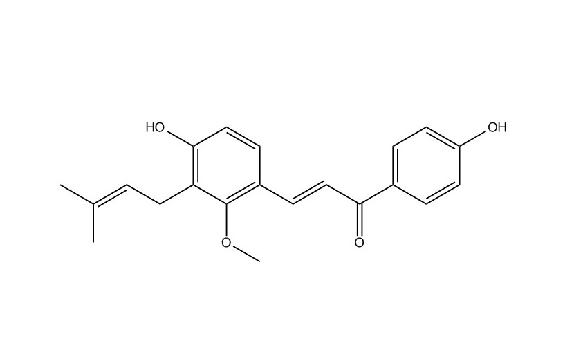 黃卡瓦胡椒素C|37308-75-1[1]. Zhenghong Guo, et al. Chemical profile and inhibition of α-glycosidase and protein tyrosine phosphatase 1B (PTP1B) activities by flavonoids from licorice (Glycyrrhiza uralensis Fisch). journal of functional foods 14 ( 2015 ) 324-336.